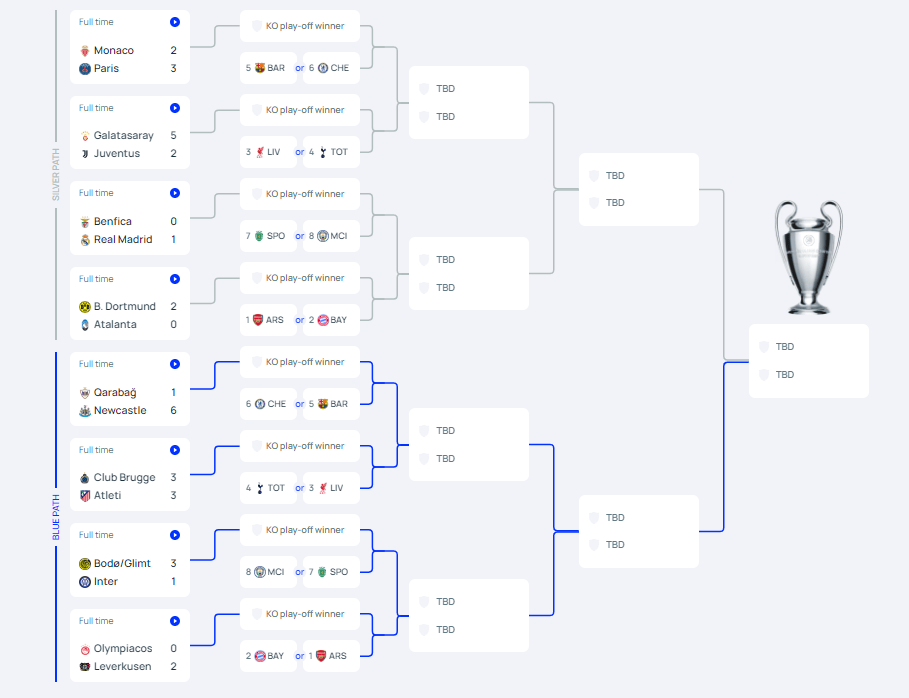 北京时间2月19日,2025-26赛季欧冠淘汰赛附加赛首回合全部战罢,赛果如下: